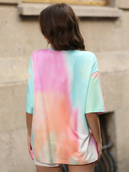 Vibrant Tie-Dye Loose Drop Shoulder Short Sleeve T-Shirt for Effortless Style
