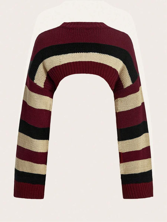 Y2K Grunge Stripe Pattern Super Crop Sweater - Trendy