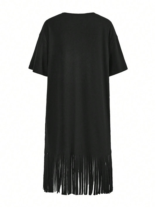 Y2Kool Deniart Dark Casual Fringe Hem Dress - Perfect for Summer Parties, Festivals, and Vacations
