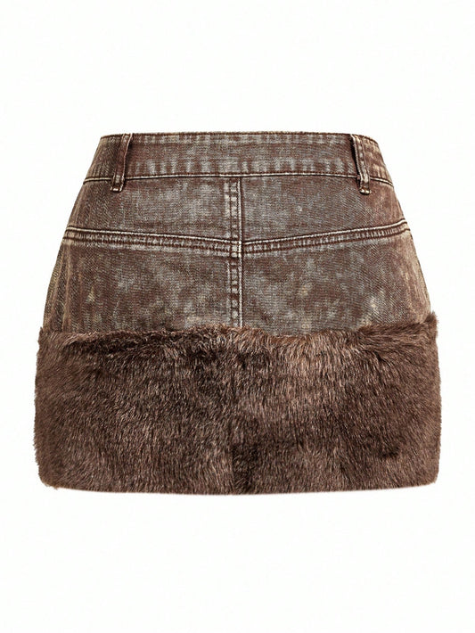 Y2Kool Women's Denim Mini Skirt with Faux Fur – Perfect for School, Parties, and Winter Evenings