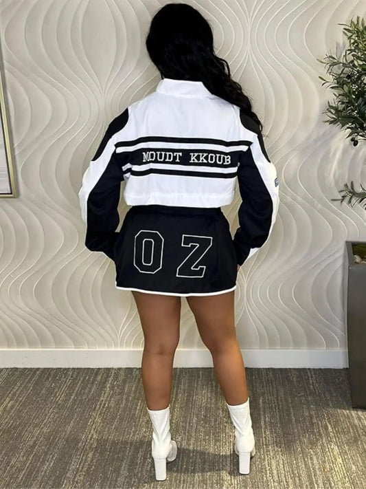 Women Detachable Letter Graphic Jackets Vintage Color Block Baseball Coat