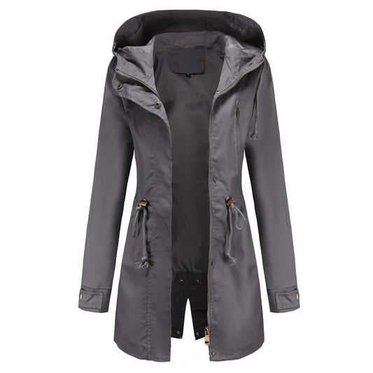 Women Jacket Windproof Windbreaker Trench Coats Female Hooded Drawstring Long