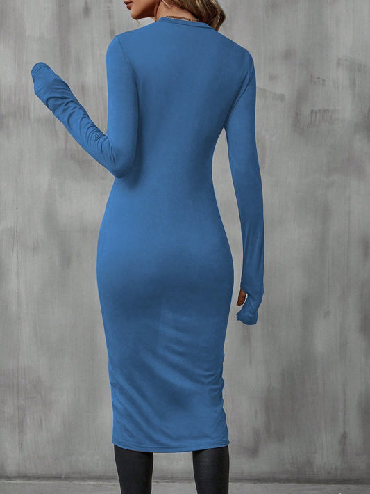 Women's Minimalist Long Sleeve Crew Neck Tee - Casual Solid Color Top for Effortless Style