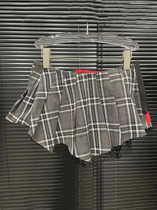 Women's Patchwork Plaid Design Pleated Mini Skirt High Waist A-line Skirt