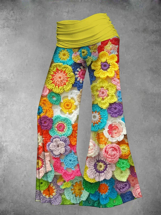 Women's Loose High Waist Flared Pants Floral Pattern Bohemian Style Digital Flower Print