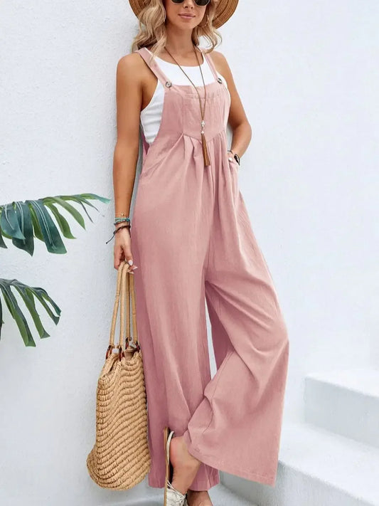 Women's jumpsuit with wide legs, long pants, high waist, casual pocket, street wear