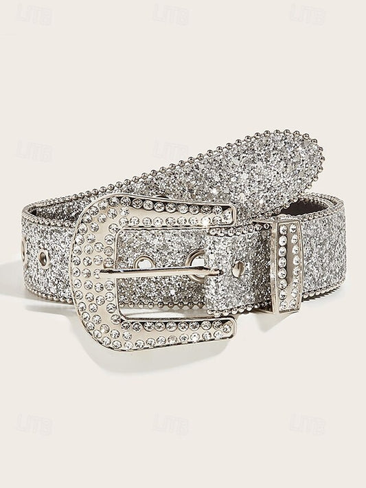 Women's Rhinestone Embellished Western Belt with Sparkling Buckle, Adjustable