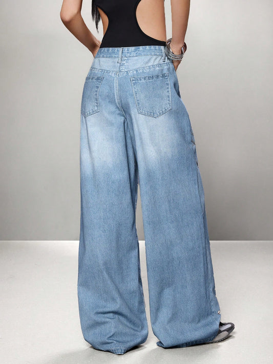 Women's Low Waist Loose Wide Leg Jeans - Perfect Summer Vibes for Graduation, Concerts & Vacations