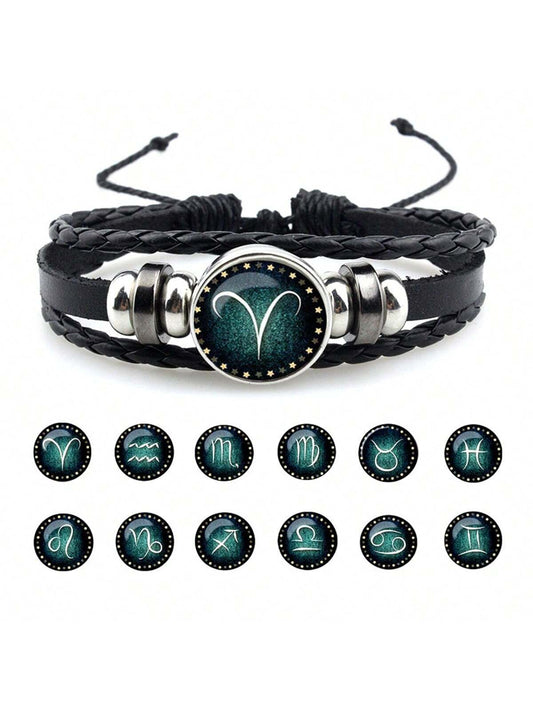 Zodiac Sign Gemstone Bracelet: Stylish Beaded PU Leather Accessory for All 12 Constellations