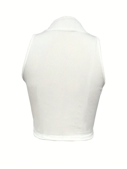Zipper Chic: Casual & Sexy Ribbed Knitted Camisole for Effortless Vacation Vibes