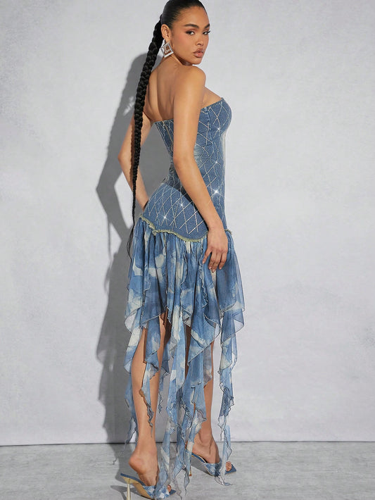 Trendy Denim Fringed Patchwork Skirt for Stylish Casual Outfits and Holidays
