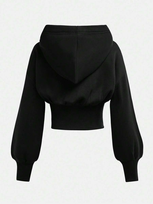 Trendy Navy Blue Hooded Cropped Sweatshirt for Teen Girls - Perfect for Fall & Winter Casual Wear
