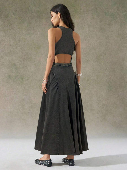 Trendy Women's Black Distressed Backless Dress - 2025 New Arrival