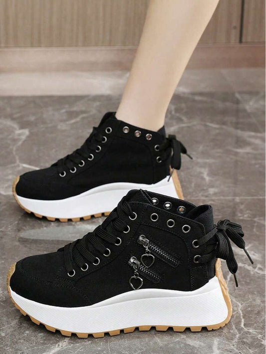 Trendy Women's Casual Sports Shoes with Side Zipper - Comfortable Thick Soled Design for Spring and Autumn Adventures