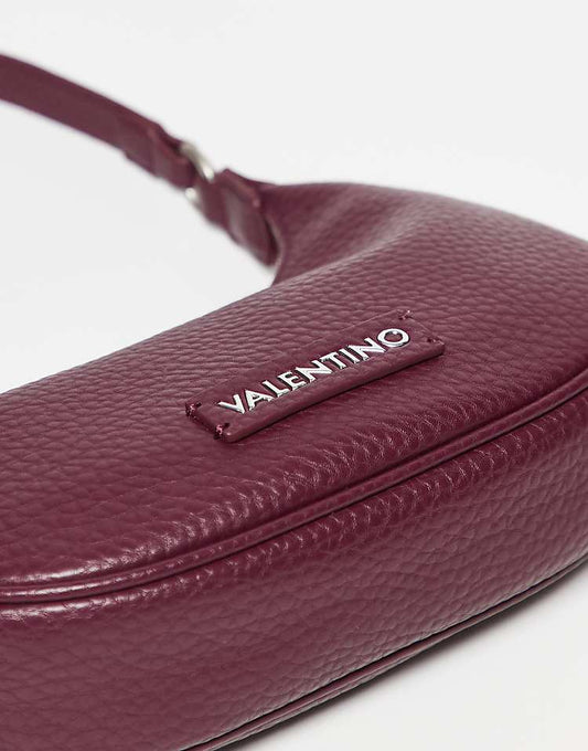 Valentino Willowy Burgundy Re-Textured Shoulder Bag with Crossbody Strap and Buckle Detail