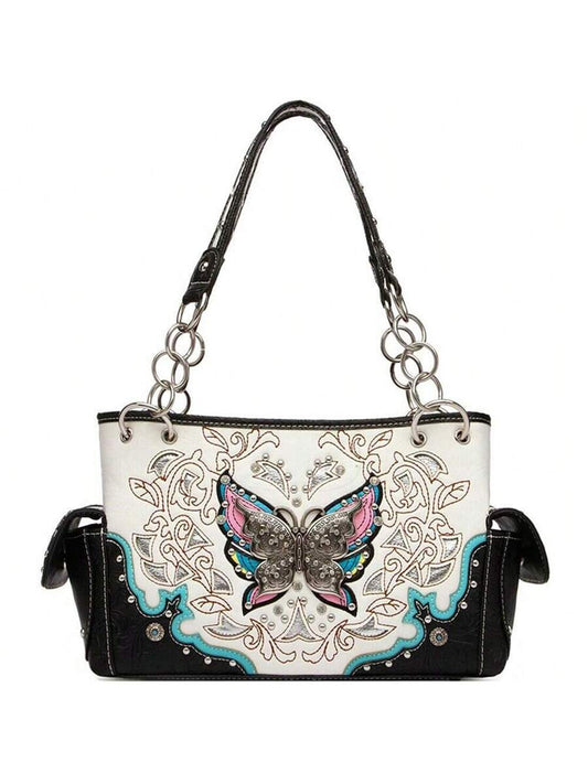 Western-Inspired Butterfly Flower Handbag Set: Stylish Concealed Carry Spring Purse for Women