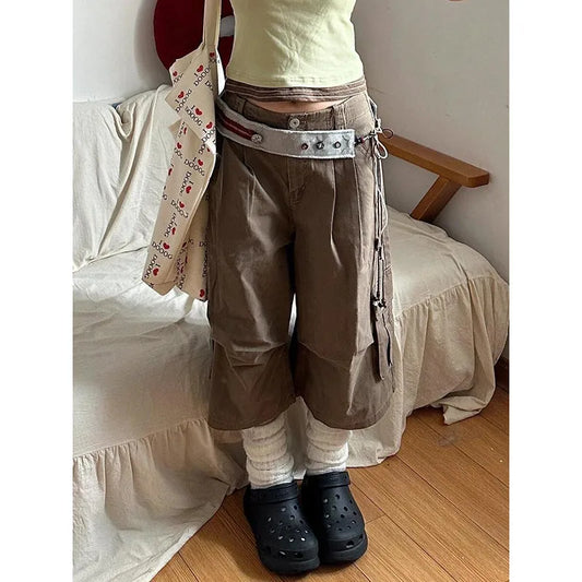 Y2K Cargo Pants for Women - Punk Mid Rise Slim Fit Wide Leg Grunge Trousers with Pockets - Trendy Streetwear Outfit