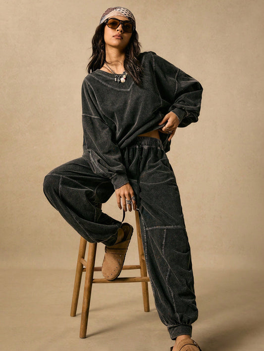 Easelle Retro Nomad Trousers and Sweatshirt Two-Piece Set for Casual Autumn Fashion