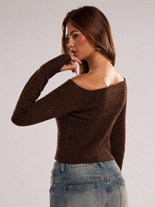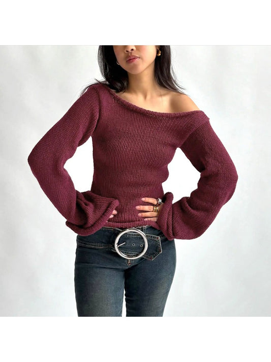 Stylish Women's Off-Shoulder Cropped Sweater for Autumn and Winter - Perfect for Going Out and Back to School