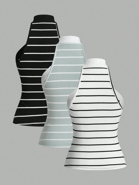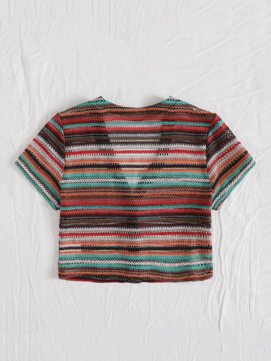 Stylish Women's Casual Striped Slim Fit Top with Criss Cross Neckline - Perfect for Summer