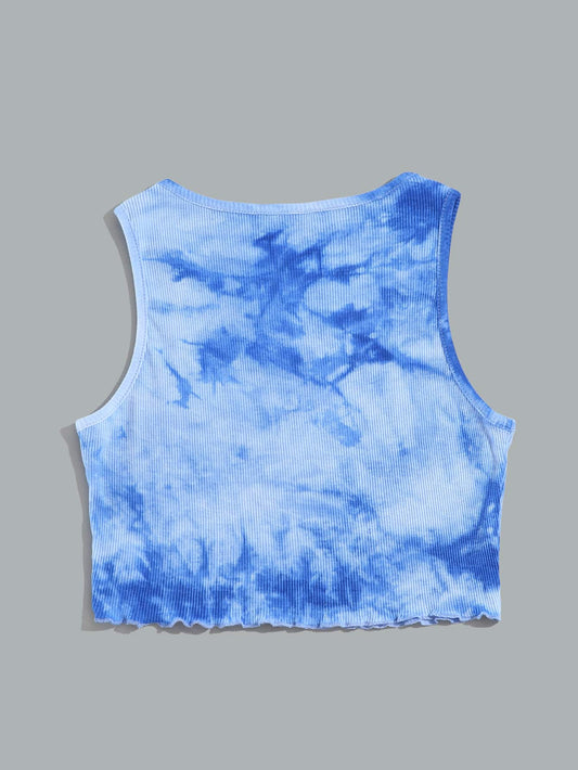 Vibrant Lettuce Trim Tie-Dye Crop Tank Top for a Stylish Summer Look