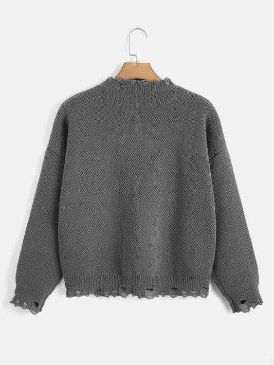 Edgy Skull Pattern Drop Shoulder Distressed Sweater for a Bold Style