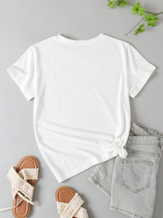 Trendy Slogan Printed Short Sleeve T-Shirt for Casual Wear