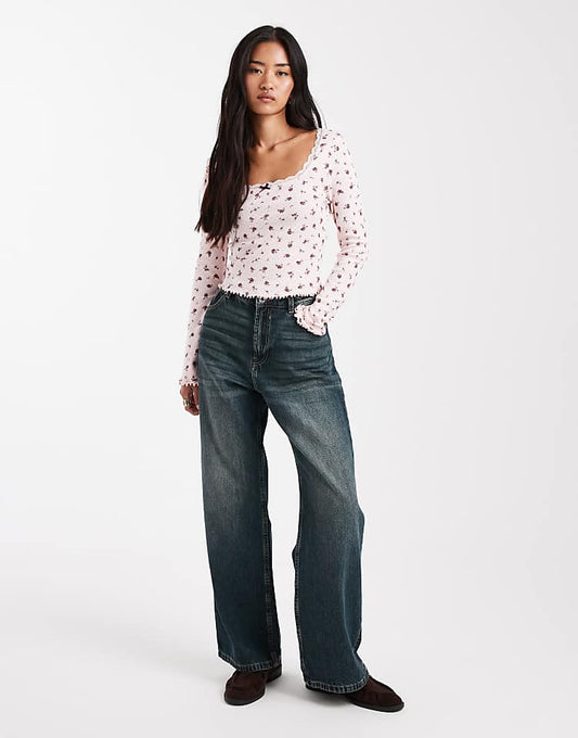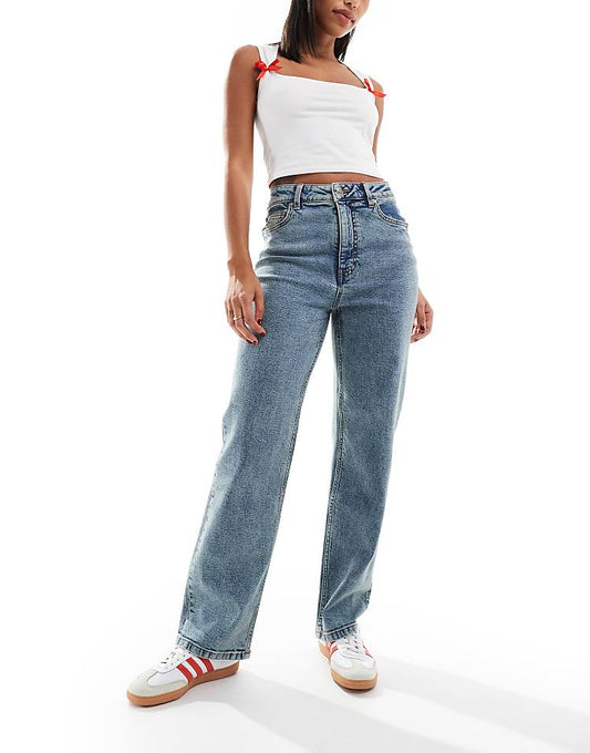 Heart Pocket Straight Leg Jeans in Vintage Dirty Wash - Trendy & Stylish Fashion Statement
