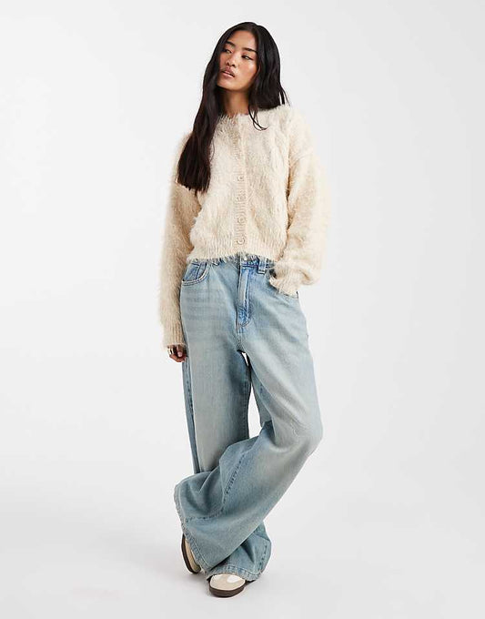 Cozy Buttermilk Fluffy Cable Knit Crew Neck Cardigan