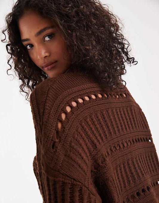 Chocolate Textured Sweater - Cozy Elegance for Any Occasion