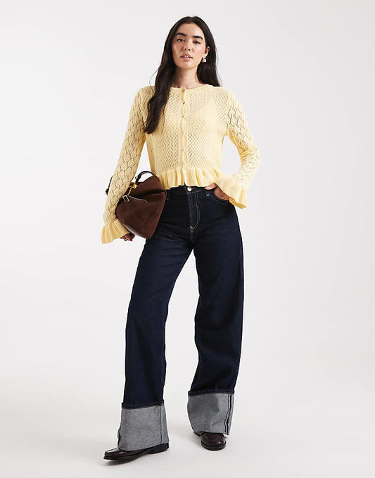 Stylish Buttermilk Peplum Knit Cardigan for Chic Layering
