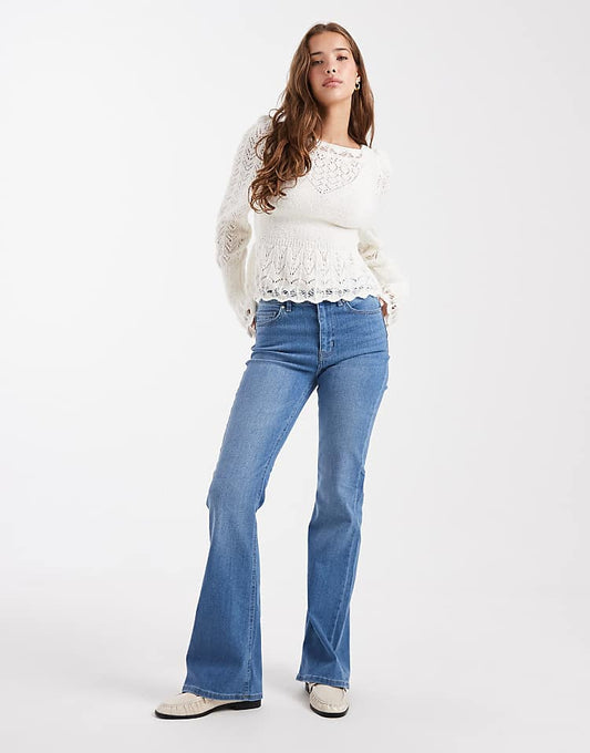 High-Waist 70s Denim Flares with Patch Pockets for Effortless Retro Style