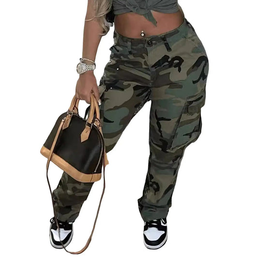 Cargo Pants Fashion Women Camo Print Oversized Pocket High Waist Baggy Pant Casual Hip Hop Straight Trouser