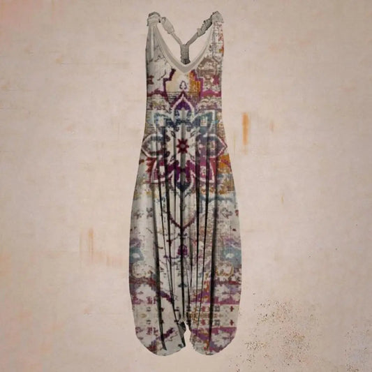 Harem Romper One-piece Jumpsuits Overalls Womens Abstract Print Backless