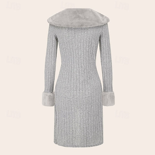 Cozy Chic: Striped Drop Shoulder Sweater Dress for Fall & Winter Fashion