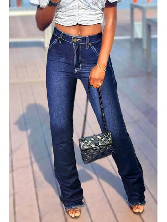 Essential Everyday Denim Pants for Women - Solid Color Casual Style