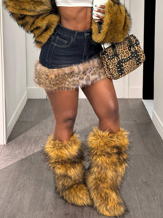 Trendy Slaydiva Denim Mini Skirt with Fur Collar for Street Style and Party Wear