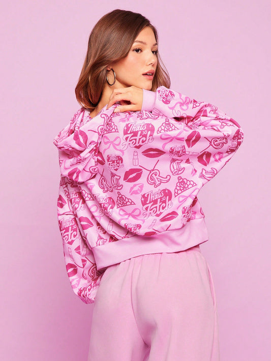 Mean Girls X SHEIN Women's Casual Lip Print Zip-Up Hoodie for Autumn Style