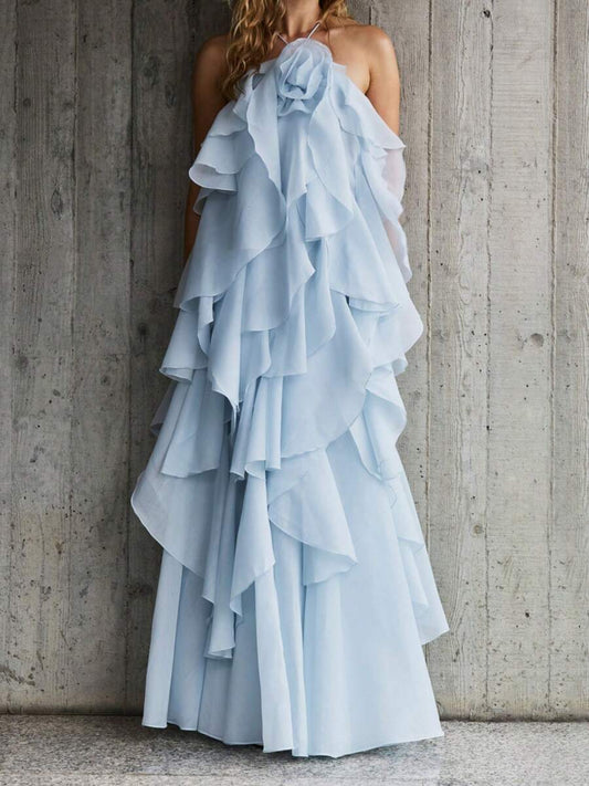 Chic 3D Flower Summer Dress with Irregular Ruffles and Backless Design for Beach and Party Wear