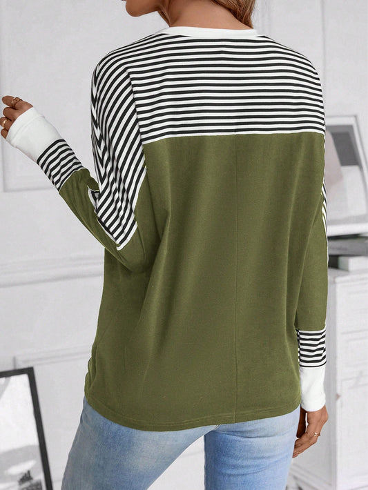 Striped Batwing Sleeve Tee for Effortless Stylish Looks
