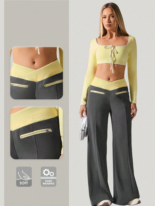 Trendy Fluxe Women's Casual Contrast Color Pants for Effortless Style