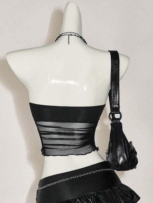 Metallic Starfish Decor Hollow Out Mesh Crop Top – Perfect Casual Wrap for Your Vacation Wardrobe