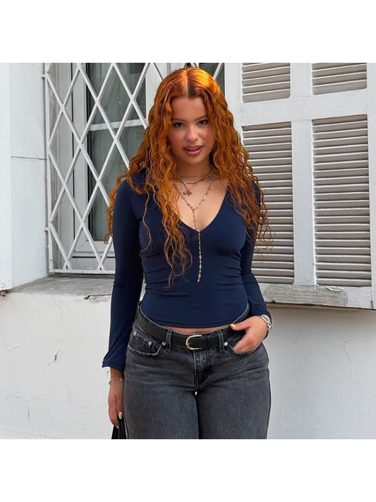 Trendy Women's Long Sleeve Crewneck Ribbed T-Shirt - Casual Fall Essential for Every Wardrobe