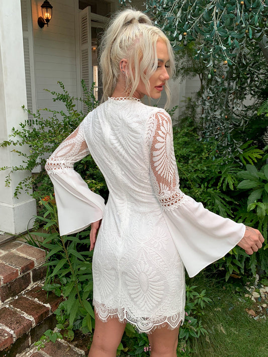 Elegant Eilly Bazar Bell Sleeve Guipure Lace Dress with Scallop Hem for Timeless Style