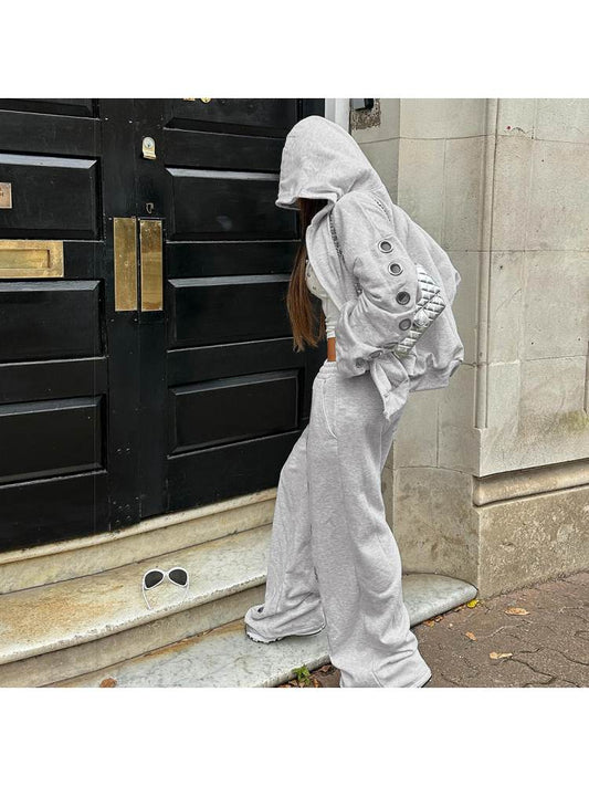 Trendy Women's Stretch Denim 2-Piece Set: Irregular Jacket & Straight Pants for Baddie Streetwear Style