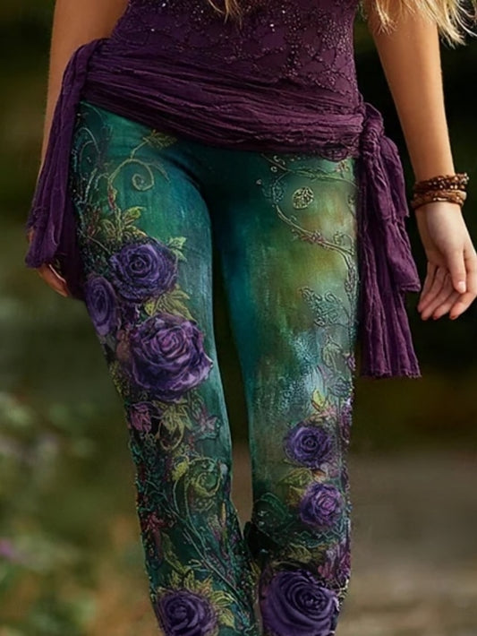 Stylish High-Waist Floral Leggings for Women - Comfortable Stretchy Streetwear Pants for Casual Vacations