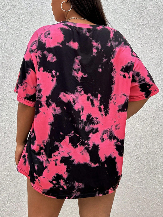 Deniart Artist Plus Tie-Dye Skeleton Print Drop Shoulder Graphic Tee for Summer Festivals and Vacations