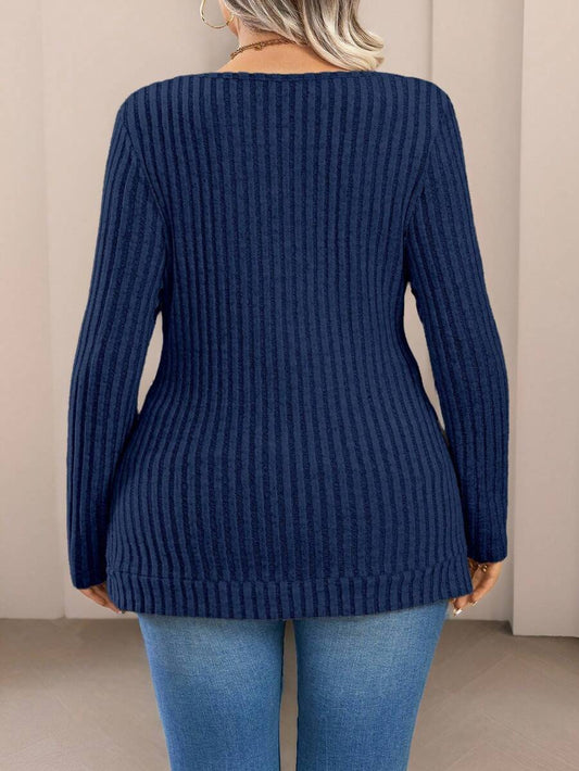Nubod Plus Size Women's Casual Draped Neck Long Sleeve Ribbed T-Shirt for Spring Summer Style