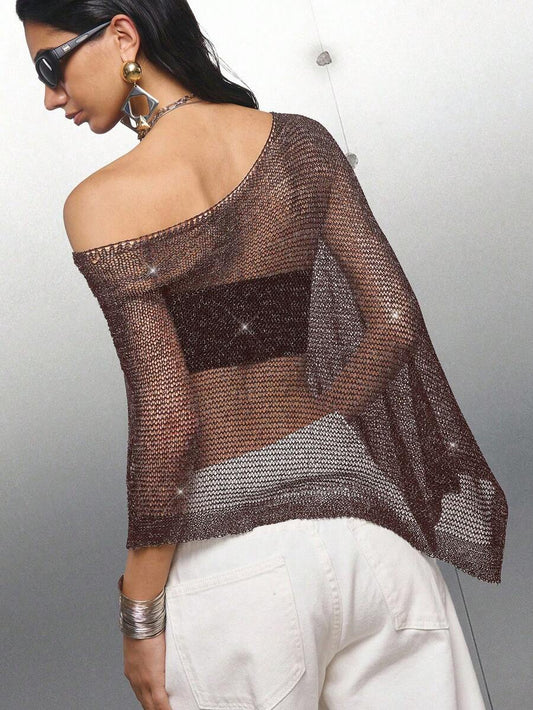 Chic Off-Shoulder Hand-Knit Sweater for Women: Urban Minimalist Winter Style with Tassel Sleeves