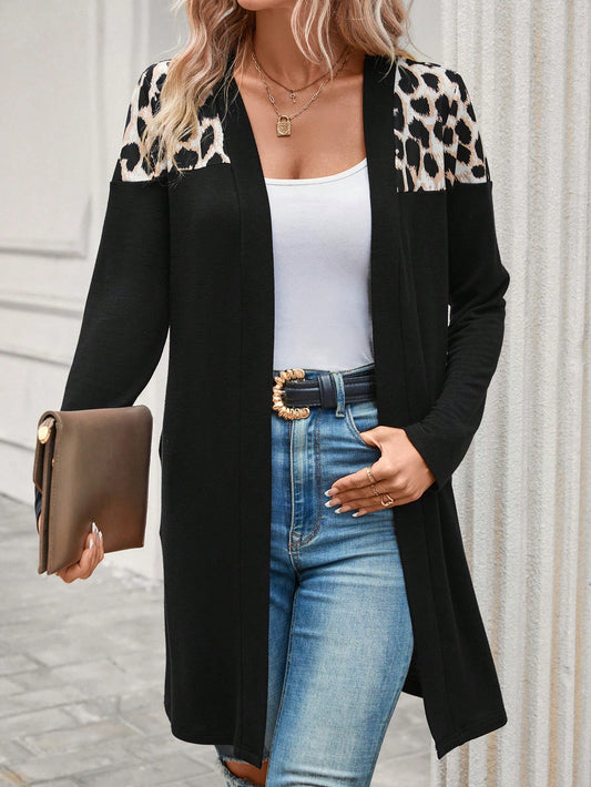 Stylish Leopard Print Open Front Coat for Effortless Fall and Winter Fashion